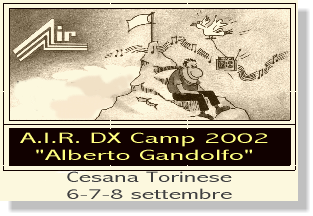 Si rinnova l'appuntamento annuale con l'A.I.R. DX Camp di Cesana Torinese (TO), organizzato dal gruppo locale di Torino. L'undicesima edizione del DX Camp si svolgerà nei giorni 6, 7 e 8 Settembre 2002 presso il Soggiorno Alpino "Luce"-CIF Genova (tel. 0122/89153), situato ad appena 100 metri a monte della "Frassati" e che ci ha già ospitati nella scorsa edizione. Probabilmente la Casa Alpina "Pier Giorgio Frassati" resterà ancora chiusa per lavori ma non è esclusa una riapertura proprio in quei giorni. Si ricorda che il Soggiorno Alpino, con la stessa gestione, dispone di 23 camere per un totale di circa 90 posti letto, alcune dotate di lavabo interno, ma tutte senza bagno che è situato ai piani. Poiché tutti gli anni vi si ritrovano squadre sportive giovanili è opportuno che chi è interessato s'iscriva quanto prima, per agevolarci nella sistemazione delle camere. Questo vale in particolare modo per le coppie e/o famiglie. Si ricorda che occorre portarsi gli asciugamani e che l'appuntamento è riservato ai Soci A.I.R. e loro familiari. La pensione completa costa 27,00 €uro (camere senza bagno). Tenete conto che dai vari prezzi sono esclusi gli extra: consumazioni nel bar, snack vari, ecc. Ecco comunque uno specchietto riassuntivo dei prezzi che sono validi per il Soggiorno Alpino "Luce"-CIF Genova, mentre se si soggiornerà alla "Frassati" la pensione completa costa 28,00 €uro (eventuali adeguamenti degli importi saranno regolati dai partecipanti sul posto). Ecco comunque uno specchietto riassuntivo dei prezzi: