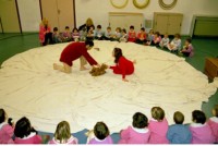 Inizia così il gioco simbolico o di finzione, di grande importanza per lo sviluppo cognitivo ed emotivo, in cui il mondo immaginario del bambino ha libero sfogo e in cui è possibile scoprire il primo gioco teatrale, la prima assegnazione delle parti o la prima scoperta dei ruoli; quel pupazzo scelto chi sa perché e fra quanti altri, solo lui, unico ed insostituibile, sa trasformarsi alloccorrenza in cucciolo impaurito da proteggere, in eroe imbattibile, in furfante da sgridare, in compagno di sogni e paure della notte. Sulla base di tali considerazioni, dalla lettura stimolante di "In principio era lOrsacchiotto" di Tilde Giani Gallino (Milano, Arnoldo Mondadori Editore, 1996), dalle sperimentazioni dello spettacolo in fase di creazione e dai laboratori sul tema dellOggetto Transizionale di Winnicot nelle Scuole per lInfanzia, dalle reazioni e dai disegni dei bambini, è nato Orsetti, spettacolo offerto a un pubblico di fanciulli accompagnati a teatro dai loro peluches. Intanto, in uno scenario essenziale, avvolti da una musica giocosa ed intrigante, gli attori-danzatori insieme agli Orsetti danno vita ad un mondo, dove, come nei pensieri e nei giochi dei bambini, lazione segue una logica propria, fantastica e ricca di colpi di scena, capace di evocare al tempo stesso momenti quotidiani e sensazioni magiche ed archetipe di calore, effetto e fantasia. Orsetti potrebbe essere definito come uno spettacolo di teatro-movimento dove la parola è poco presente se non in forma di gramelot, filastrocca o esclamazione onomatopeica e dove, pur mantenendo la naturalezza del gesto e dellespressione, le azioni sono inserite allinterno delle frasi musicali. In un certo senso si potrebbe fare un paragone con il cinema muto che, proprio per quel linguaggio semplice e quotidiano, lieve ed ironico, riconoscibile e comune, continua a far sorridere adulti e bambini di diversa origine e cultura. |