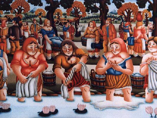 Franco Conti: "Le lavandaie", 1989 olio su tela, cm 100x70 Collezione privata