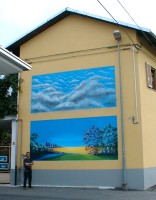posa accanto alla sua operaSi ringrazia per aver contribuito economicamente alla realizzazione del dipinto Attilio Bosio.
