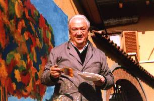 ripreso accanto alla sua operaSi ringraziano per aver contribuito economicamente alla realizzazione del dipinto Enea Avosani, Roberto Carratello, Luisa Dosio, Paola Gemello e Laura Gramegna.