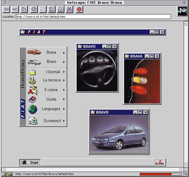 Anche la Fiat, per il debutto dei suoi nuovi modelli, ha aperto una vetrina su Internet, dove si possono ottenere le informazioni desiderate. Molto curata la grafica del servizio.
