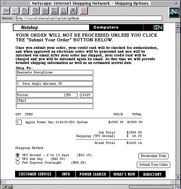 Per ragioni di spazio non è possibile in questa breve appendice illustrare in dettaglio l'interessante mondo del commercio elettronico. Per un maggiore approfondimento non possiamo che augurarvi un buon viaggio su Internet.