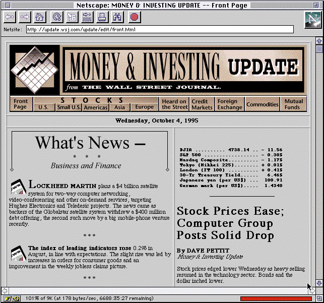 Anche il prestigioso Wall Street Journal possiede una versione elettronica su Internet, con notizie aggiornate ogni giorno.