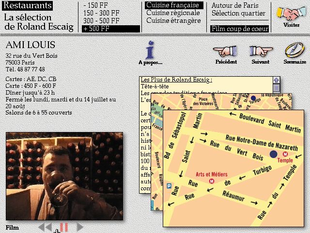 In questa pagina è riportato un esempio di guida turistica elettronica. In 'Restaurants & Hotel de Paris' è possibile ricercare e consultare l'offerta di alberghi e ristoranti in Parigi. In futuro sarà anche possibile effettuare automaticamente la prenotazione.