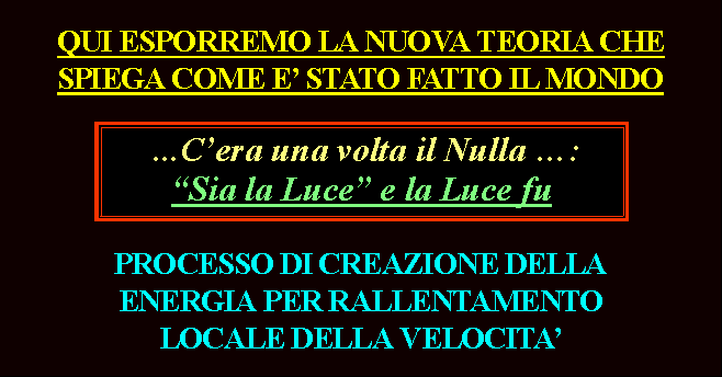 SENZA L'IMMISSIONE INESAUSTA DEL NUOVO L'UNIVERSO PRECIPITEREBBE IMMANTINENTE NEL NULLA E NELLA FINE