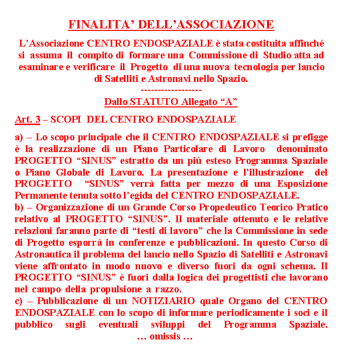 CENTRO ENDOSPAZIALE fin da ora si propone di