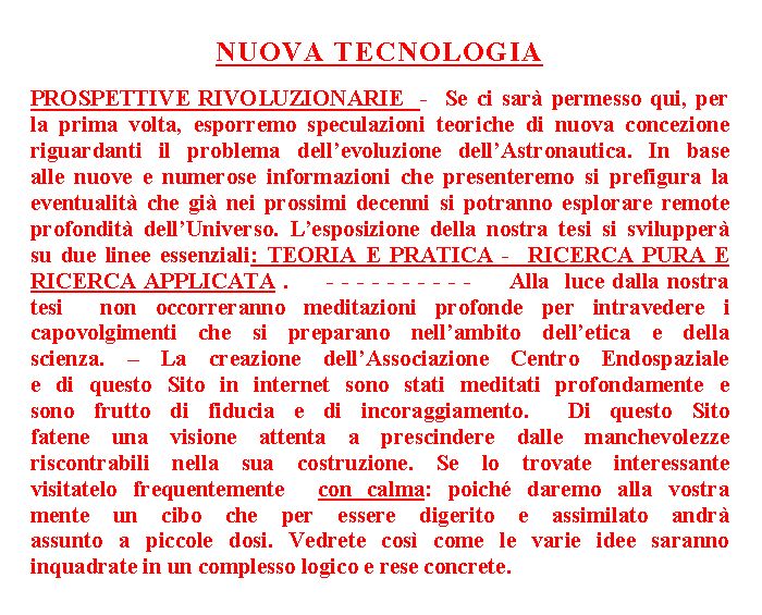 principio dei nostri Studi e Ricerche, abbiamo ritenuto il razzo