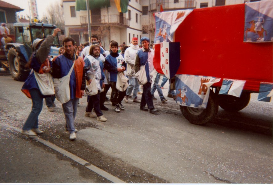 Nato quattro anni fa alla chetichella per rievocare una tradizione testonese del passato, oggi irrobustito, conta oltre venti aderenti, che si adoperano nel periodo del carnevale per organizzare la cosiddetta "battaglia della farina". Gemellati con la cittadina di Bruino, anch'essa seguace di questa tradizione, si fanno portatori di cultura con uno spettacolo del tutto inedito. Un importante riconoscimento e' stato ottenuto dal gruppo in occasione del carnevale 1996, quando la RAI ha ripreso e trasmesso sulle due reti nazionali la manifestazione. |