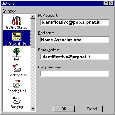 si riporta la configurazione di Eudora Dopo aver istallato il programma configurarlo nel seguente modo: Cliccare su Personal Info