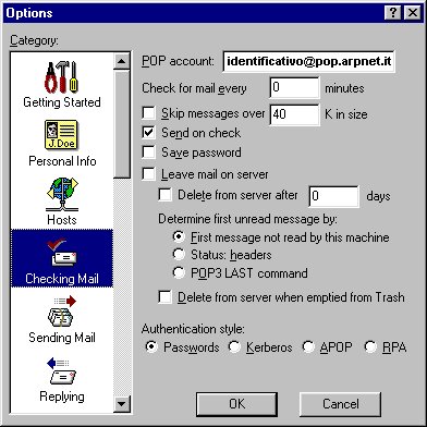 Cliccare su Checking Mail e accertarsi che la voce Leave mail on server sia disabilitata