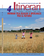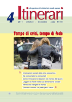 III. PER UNA SPIRITUALITÀ DELL'IMPEGNO SOCIALE Iniziative, riflessioni, azioniLa persona umana in educ-azione di Carlo Pantaleo Responsabilità e partecipazione di Augusto Tonni Percorsi di pastorale socialeLavoro e postfordismo di Michele La Rosa e Claudia Dall’Agata “Non c’era posto per loro”. La casa, un bene fondamentale Ri-conoscere la famiglia di Ermes Rigon Perchè c'è la crisi? Dove è nata? Finirà`? Come finirà? di Roberto Soldati Letture della “Caritas in veritate”L’enciclica “Caritas in veritate” di Giampaolo Salvini Custodia del creato e stili di vita di Antonio Moro Il lavoro vocazione della persona. Per la carità nella verità di Carlo Pantaleo “Caritas in veritate”. Presentazione di Stefano Zamagni a cura di Paolo Guiducci Sviluppo dei popoli e cooperazione internazionale alla luce della “Caritas in veritate” di Antonio Moro MemoriaLa vocazione cristiana di Luigi Tiberti Per una spiritualità laicale nel mondo del lavoro di Luigi Tiberti Allegato al numeroIl lavoro è per l’uomo. La crisi attuale: aiuto al discernimento di Paolo Doni Da cristiani dentro la crisi economica. Riflessioni, proposte, nuovi stili di vita. a cura dei gruppi CML di Rimini |