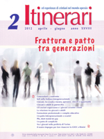 Generazioni a confronto (Carlo Pantaleo) Soli nella frattura intergenerazionale (Domenico Cravero) Giovani, tra scuola e lavoro, speranze, vincoli e opportunità (Lucilla Ciravegna) Giovani e adulti in parrocchia (Paolo Resegotti) "Gli anziani sogneranno e i giovani avranno visioni" (Paolo Mignani) Essere mantenuti, mantenersi, mantenere: la relazione tra giovani e adulti (Ferruccio Ceragioli) Formazione professionale e compito educativo (Chiara Ortali) Un patto intergenerazionale a scuola? (Salvatore Passari) Plis, dont maind de gap (Antonello Ronca) Un patto di complicità (Domenico Chiesa) Tra i giovani nella periferia di Torino (Silvia Trovò) Il nostro impegno per fare rinascere la GiOC (Claudio Golfieri e Alice Foiera) |
