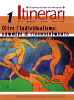I. OLTRE L'INDIVIDUALISMO, CAMMINI DI RICONOSCIMENTO Introduzione ai "Corsi estivi" 2012 (Vincenzo Buttafuoco) Lessico del riconoscimento (Oreste Aime) Esercizi di reciprocità. Dono, sussidiarietà, redistribuzione (Marco Revelli) Danzare le relazioni nel tempo dell'incertezza. Tra riconoscimento e disconoscimento (Sergio Manghi) Identità, relazione, riconoscimento nei "territori misti" del mondo ipermediale (Chiara Giaccardi) "Non c'è altro comandamento più grande di questi" (Mc 12, 31). Il dono del riconoscimento e la grazia della fede (Ferruccio Ceragioli) |