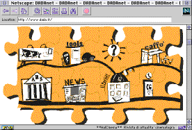 Ritorniamo ad Internet dove i viaggi sono a volte entusiasmanti, a volte piuttosto deludenti perché occorrono delle ore per incontrare "risorse" che valga la pena di approfondire. Questo capita quando si vuol provare l'emozione di vagare per il mondo senza bussola, senza una meta fissa. Per chiudere l'itinerario andiamo "a colpo sicuro" in un sito che ci ripaga di precedenti frustrazioni perché è un "concentrato" di quello che avevamo cercato: è Dadanet, di Firenze, all'indirizzo: