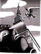 La Torino guardata da Kostabi è una città vista attraverso locchio di de Chirico. In realtà sembra una Torino nata in un viaggio telematico
